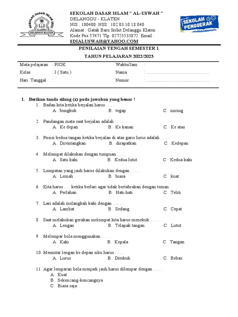 Umumnya, soal PAS PJOK Kelas 7 SMP akan mencakup kombinasi dari beberapa tipe soal: